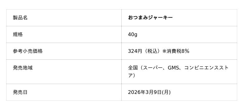 株式会社なとり(本社:東京都北区 会長兼社長:名取三郎)は、「おつまみジャーキー」を3月9日(月)より新たに発売いたします。