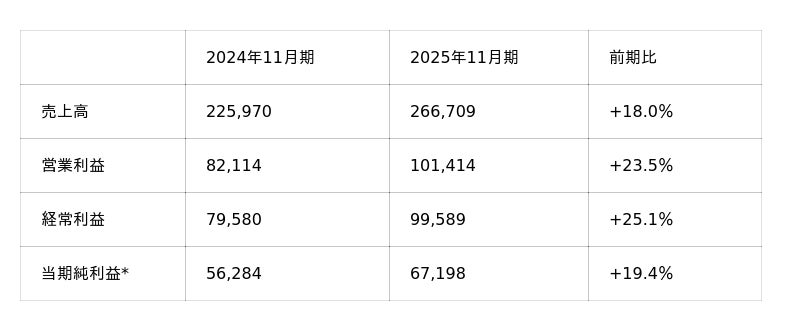 結果は、グループ連結売上高2,667億円(前期比18.0%増)、経常利益996億円(前期比25.1%増)(いずれも億円未満を四捨五入)と、前期対比増収増益となり、3期連続で過去最高売上、過去最高利益を更新した。