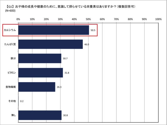 子どもに意識して摂らせている栄養素 第1位はカルシウム