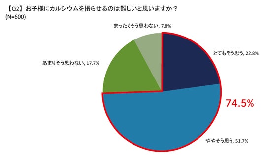 さらに、全体の74.5%の母親が子どもにカルシウムを摂らせるのが難しいと感じています。