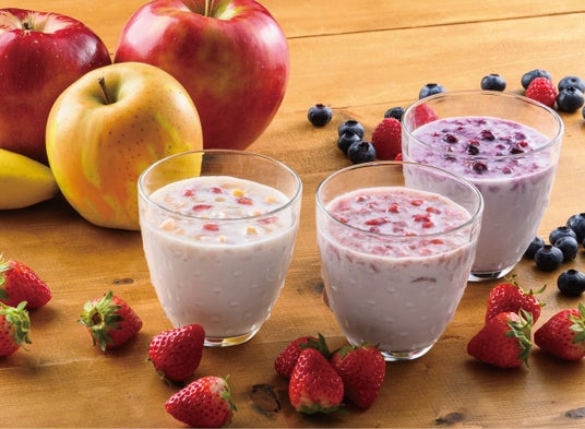 甘さと酸味のバランスにこだわり、りんご・いちご・バナナの3種のフルーツをあわせ、牛乳がもっとおいしく飲める、すっきりとした自然な甘さに仕上げました。
