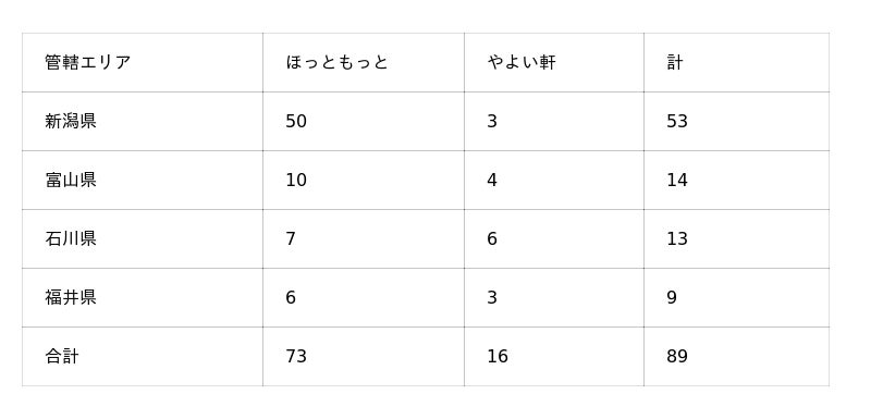 ・北陸支社内における店舗数