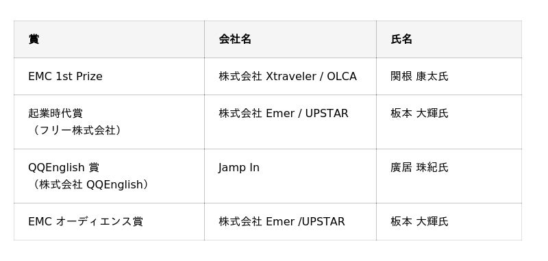 ※株式会社 Emer /UPSTAR 板本 大輝氏はオーディエンス賞と起業時代賞をダブル受賞