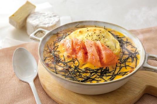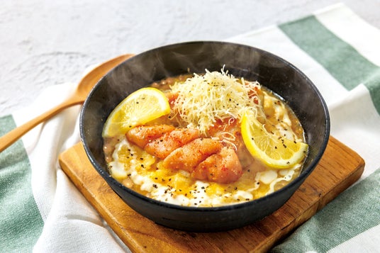 熟成明太子とパルメザンチーズの焼きオムドリア大人気、ふわとろ卵の焼きオムドリアに明太子をのせたシンプルながらも味わい深いオムドリアです。クセがなくまろやかな味わいのパルメザンチーズと、熟成明太子は相性抜群で飽きのこない一品です。