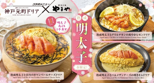 株式会社サンマルクグリル(本社:岡山県岡山市、代表取締役社長:山内智央)が運営する「神戸元町ドリア」「横濱元町ドリア」「チーズ&ドリア.スイーツ」の各店で、2月26日(木)から春期間限定の「明太子フェア」を開催いたします。「明太子フェア」は、博多の辛子明太子メーカー株式会社やまやコミュニケーションズ(本社:福岡県糟屋郡篠栗町、代表取締役社長:山本 正秀、以下やまや)様と共同で開発したもので、今年でコラボ開催3年目を迎えます。