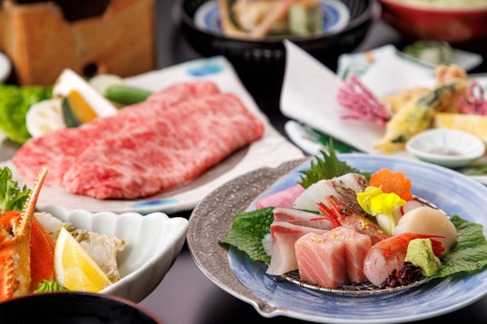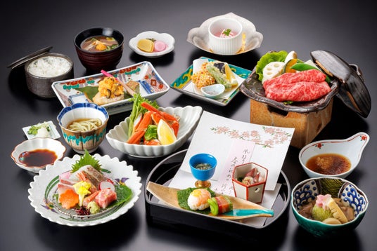 大江戸温泉物語グループで唯一の会席料理を提供する「わんわんリゾート 矢田屋松濤園」では、四季折々の海の幸・山の幸を、料理長が技術の粋をつくして腕を振るい仕立てます。会席料理は「基本会席」と「特選会席」の2種類をご用意。季節の食材と、加賀野菜などの地元食材“じわもん”を使った、繊細な会席料理をお楽しみください。