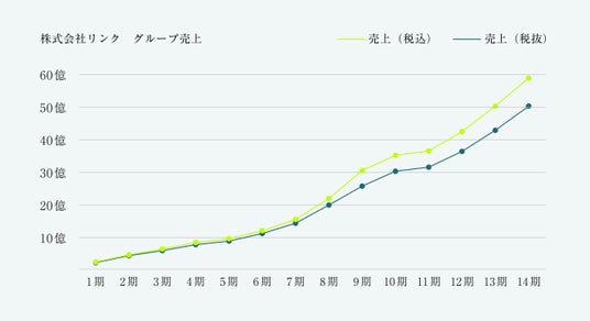 前期(第13期)売上高50.4億円(税抜 45.8億円)に対し、前年比約117%(約17.1%増)となり、約8.6億円の増収となりました。