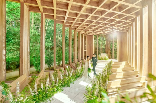完全貸切の空間で、スタイリストが「森」と「空」それぞれのロケーションにおすすめする衣装を特別展示します。