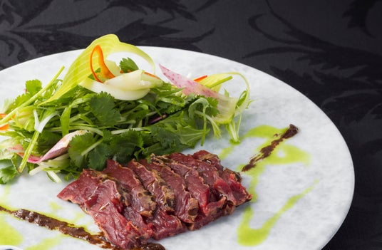 ソースには、鰹の旨みと黒にんにく(発酵にんにく)のコクを合わせた特製ソースを合わせ、赤身の味わいに奥行きを添えています。