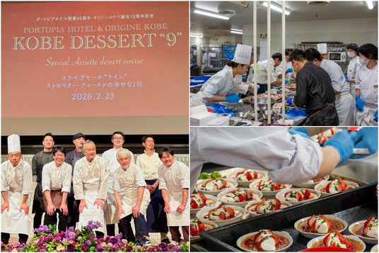 株式会社神戸ポートピアホテル(神戸市中央区、総支配人 伊藤 剛)は、2026年2月23日(月・祝)にポートピアホテル45周年とオリジンコウベ10周年を記念したスペシャルイベント、『「KOBE DESSERT“9”(コウベデセール”ナイン”)~ストロベリー・フィールドの幸せな一日~』を開催いたしました。