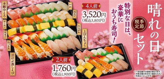 レストランチェーンを展開する株式会社Genki Global Dining Concepts(本社:東京都台東区 代表 取締役社長執行役員 藤尾益造)は、卒業式や合格発表など、春の“晴れの日”をご家庭で祝うひとときに食卓を華やかに彩る『晴れの日セット』を、全国の魚べい・元気寿司で期間限定販売いたします。