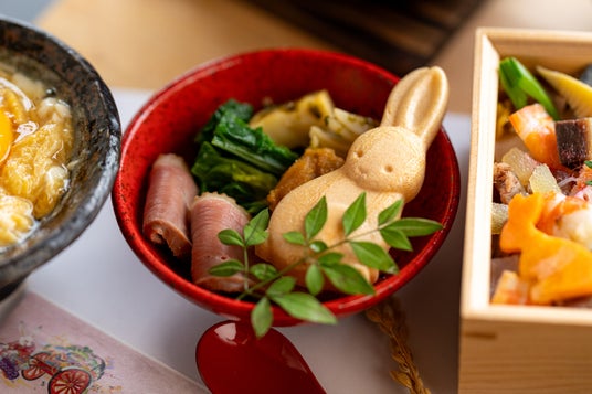 筍(成長と生命力・成功運)、鯛(めでたい・富・商売繁盛)、海老(長寿)など、縁起の良い食材を一口ごとに異なる食感でお楽しみいただける、春ならではの贅沢な一箱です。