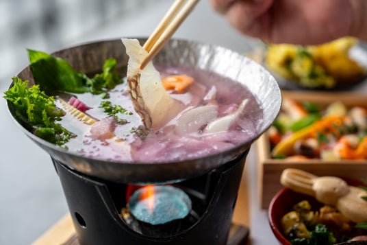 桃色の霙(みぞれ)を春霞に見立て、満開の桜を表現したお鍋。