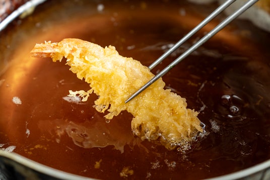 天ぷらは注文を受けてから一本ずつ揚げています。衣は薄めに仕上げ、海老や山菜の素材の味をそのまま楽しめるよう調整しています。