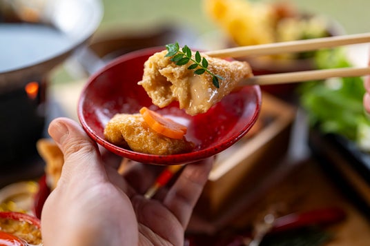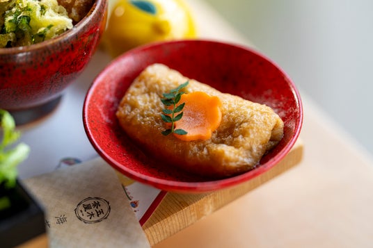 黄金色に炊き上げたお揚げで「幸せが長く続くように」と願いを込め、お餅や蓮根を包んでおります。