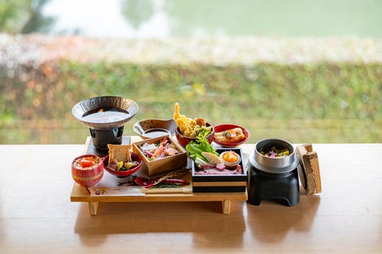 春を象徴する「山や海の幸」と五木茶屋には欠かせない「縁起物」をふんだんに使用。