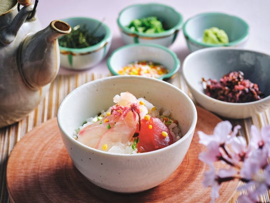 桜鯛(真鯛)のお刺身 / 海鮮丼&海鮮茶漬け / マグロの炙り ハーブ風味 / マグロとアボカドのタルタル / マグロのエスカベッシュ / ツナとジャガイモのミモザサラダ / よもぎ麩 西京味噌焼き / 有頭海老 トマトガーリックソース など
