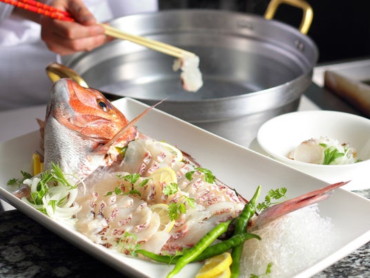 黒毛和牛のステーキ / 桜鯛(真鯛)のしゃぶしゃぶ / メバルと海老の鉄板焼き