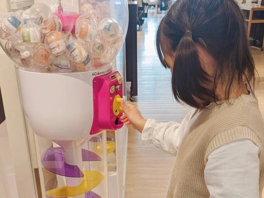 BIGカプセルトイをご用意しました。期間中1グループにつき2回、チャレンジいただけます。童心に返るひとときを、ぜひご家族皆さまでお楽しみください。