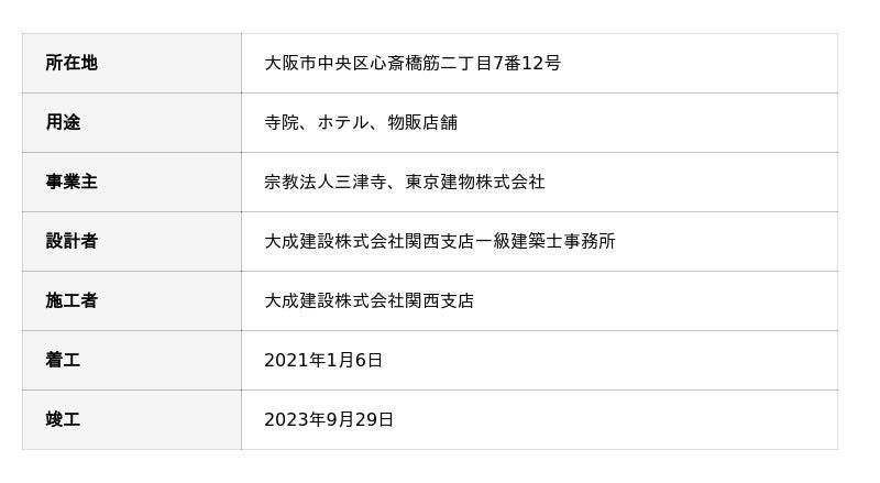 本取り組みは、三津寺の長い歴史と信仰を尊重しながら、東京建物と大成建設のノウハウを結集し、三者が連携することにより実現したものです。三者は引き続き、歴史・文化・都市機能が調和する空間づくりを通じて、日本の魅力をより高い体験価値として国内外へ発信するとともに、地域とともに歩む持続可能なまちづくりを推進してまいります。● 東京建物三津寺ビルディング 建物概要