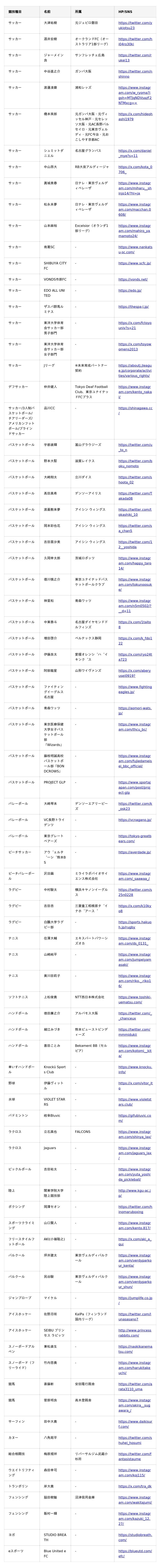 <BASE UP SPORTS サプライヤー契約一覧(現時点)>