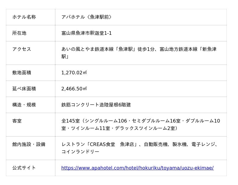 ■「アパホテル<魚津駅前>」施設概要