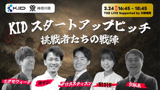 様々なコンテンツを通じて神奈川で起業する魅力を発信する大規模イベント「Kanagawa Innovators Day 2026」(KID(キッド)2026)のフィナーレを飾るプログラム「起業家プレゼンコンテスト『KID Startup Pitch-挑戦者たちの戦陣-』」について、登壇する5名の起業家や会場、演出などの詳細が決まりましたので、お知らせします。 また、併せて、最先端ロボットやドローンなどを会場前に展示するイベントも開催します。