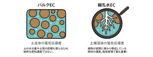 1. 「植物が本当に吸っている肥料の濃さ」がわかる(細孔水EC計測)デバイスの心臓部には、産業用途・IoT用途で高い実績を誇る株式会社村田製作所の土壌センサーを採用。一般的なセンサーが計測する土全体の電気の流れやすさ(バルクEC)だけでなく、植物が根から実際に吸収している水のイオン濃度(細孔水EC)を計測可能です。「今、植物にとって肥料が濃すぎるか、薄すぎるか」をピンポイントで把握でき、肥料焼けを防ぎながら最適な栽培管理を実現します。