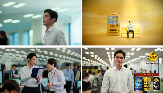 3月9日(月)より放映開始する新CMでは、俳優・高良健吾さんがスーツ姿のサラリーマン役で登場。多忙に働く人々の職場で一人になれる“休憩時間”にフォーカス。仕事の合間に少し職場を離れ自販機に向かい、「ジョージア」缶コーヒーならではの凝縮されたおいしさをほんの数分でも味わうことで、再び次の業務へ一歩踏み出す姿を描いています。CMソングには懐かしの人気楽曲・米米CLUB「浪漫飛行」をアレンジして起用しました。
