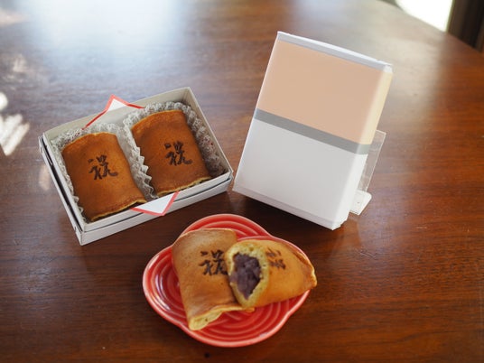 和菓子の表面に残るロゴや名前は、