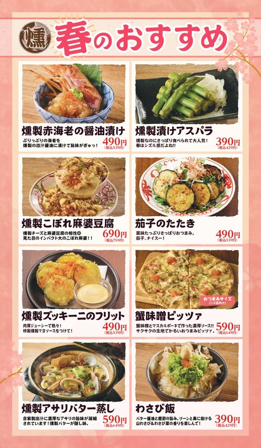「"楽しい"でつながる世界をつくる」を経営理念とする飲食企業の株式会社ファイブグループ(本社:東京都武蔵野市 代表取締役社長:坂本憲史 以下ファイブグループ)が展開する燻製居酒屋ブランド「燻し家もっくん」「とりとんくん」は、2026年3月より、あわせて全13店舗にて春の期間限定メニューの販売を開始いたします。