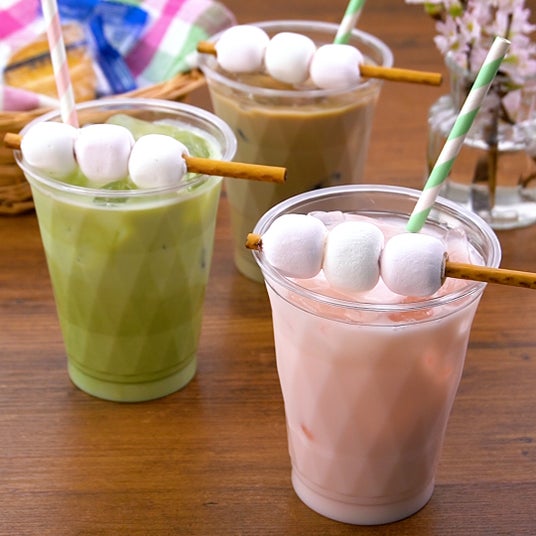 串だんごに見立てたマシュマロを添えて、可愛らしく仕上げたドリンクアレンジです。花より団子で飲み物でもお花見気分を味わいたい方におすすめ!お好みのラテでお楽しみください!