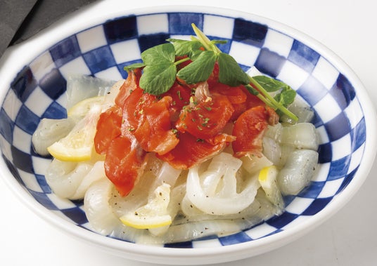 淡路島玉ねぎとスモークサーモンのマリネ 399円(税込438円)