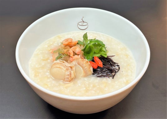 このたび、25周年キャンペーンの第一弾としてお届けするのは、創業当時大人気だった“旨みタップリなのに196kcal”のおかゆ。ホタテや干し海老などの海鮮の旨みとともに、素材の食感と香りが楽しめる一杯は、中華粥の滋味深いおいしさを楽しんでいただけるメニューとして瞬く間に人気となりました。当時から人気の麺とのセットとともに、期間限定にて販売いたします。