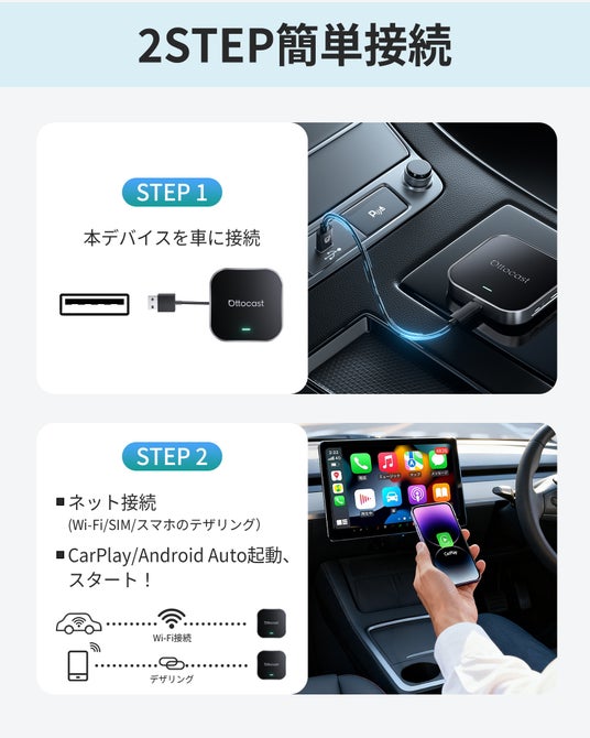 2.【有線CarPlay/Android Autoをワイヤレス化】スマートフォンの接続は不要