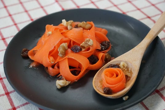 3.ニンジンをピーラーで薄くむいてレーズンと共に2.に浸し、5分ほど置く。