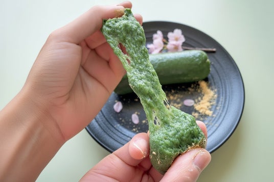 若いよもぎは葉がやわらかく、繊維が細かいため、もち米になめらかに混ざります。