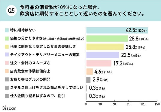 - 食料品の消費税が0%になった場合に飲食店に期待することは「価格のわかりやすさ」が約29%