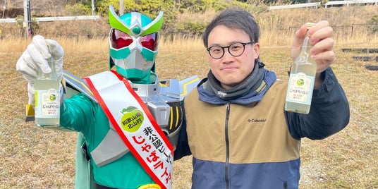 旗振り役のじゃばライダーが目指したのは、収穫現場で飲む「生搾りサイダー」の鮮烈な香り。しかし、果汁を増やすだけでは香りの立ち上がりが再現できない壁に直面。そこで辿り着いたのが、香りが凝縮された「果皮エキス」を加える手法。じゃばライダーと開発チームによる度重なる試行錯誤の末、ついに“あの瞬間の感動”を再現することに成功しました。