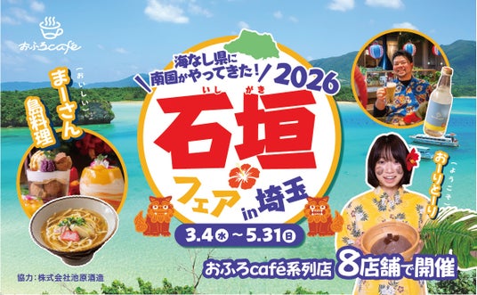 株式会社温泉道場(埼玉県比企郡ときがわ町、代表取締役 山崎寿樹)と株式会社Kii company(三重県四日市市、代表取締役 宮本昌樹)が運営する埼玉県内の下記温浴施設にて、2026年3月4日(水)~5月31日(日)の期間中、石垣島の食や文化が体験できる「石垣フェア 2026」を開催中です。