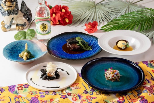 石垣島のセーイカやイカ墨、石垣牛を贅沢に使用した全5品の石垣島スペシャルコースメニューを提供。池原酒造「白百合」の泡盛とペアリングでお楽しみいただけます。