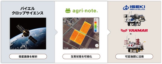 バイエル クロップサイエンス株式会社(東京都千代田区、代表取締役社長:大島 美紀、以下バイエル クロップサイエンス)と、ウォーターセル株式会社(新潟県新潟市、代表取締役社長:渡辺 拓也、以下ウォーターセル)、井関農機株式会社(愛媛県松山市、代表取締役社長:冨安 司郎、以下井関農機)、ヤンマーアグリ株式会社(岡山県岡山市、代表取締役社長:所司 ケマル、以下ヤンマーアグリ)は、4社の技術と知見を活用し、衛星データを基に圃場の生育状況を可視化し、適期作業の実現から可変施肥による肥料の効率的な使用までを支援する機能を共同開発しました。本成果を活用し、ウォーターセルは「アグリノート 衛星リモートセンシングサービス」のお試し版を2026年3 月5 日より提供開始します。