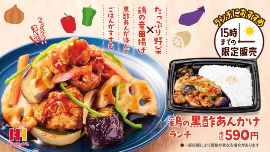 2026年3月1日(日)より、家計応援メニューの1つとして、15時まで限定で「鶏の黒酢あんかけランチ」を発売中です。その日の気分に合わせて、ほっかほっか亭の選べるお手ごろメニューをお楽しみください。