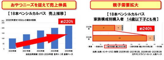 「ペンシルカルパス」は発売以来、幅広いお客様にご好評をいただいています。大人のおつまみとしてだけでなく、「子どもを含む家族みんなのおやつ」として親しまれている点が、好調の要因のひとつです。このたび、更なるおやつ需要の拡大と親子での消費推進を目的に、子どもも大人も楽しめる味わいのバリエーションを展開します。