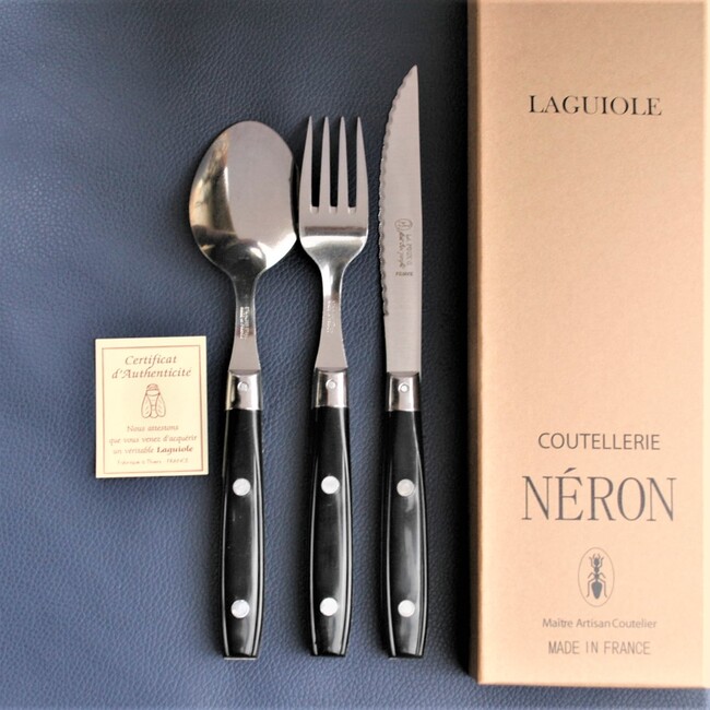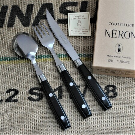 普段使いのカトラリーでもスタイリッシュなほうがいい、ナイフ、フォーク、スプーンの3点セットなのでどんな料理でもお使い頂けるフランス・NERON社の製品です