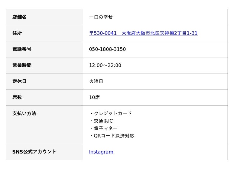 一口の幸せ【店舗情報】