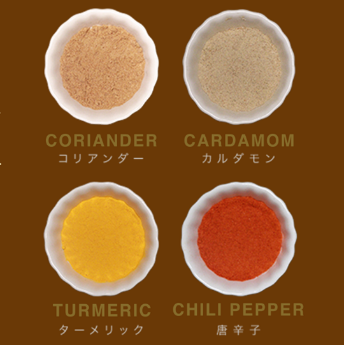 カレーソースに使用しているスパイスのうち、今回のメイン具材であるチキンに合わせて厳選したコリアンダー、カルダモン、ターメリック、唐辛子の4種類を直火釜でじっくり焙煎しました。スパイスの香ばしい香りがカレーソースに深みを与えています。また、飴色になるまで炒めて甘みを引き出したローストオニオンによってコクと甘みが加わり、より深い味わいをお楽しみいただけます。