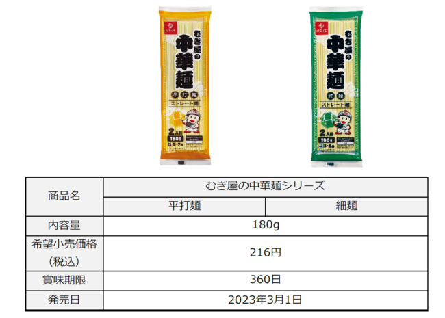本商品は「麺のコシ、のど越し、食感にこだわった中華麺」をコンセプトに、穀物一筋80年以上そして、そうめん、うどん、冷麦、蕎麦などの麺づくりを長年行ってきた当社が原料である小麦粉、配合にこだわって完成したむぎ屋ならではの「中華麺」です。