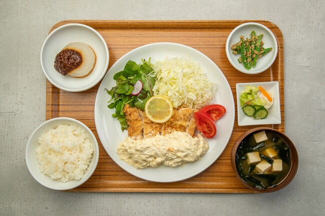 3月限定メニューの他にお勧めなのは「いぶりがっこタルタルのチキン南蛮」。肉厚のチキンを衣でカラッと揚げ、さわやかな南蛮の甘酢と濃厚タルタルソースをたっぷりかけてお召上がりいただきます。野菜もふんだんに使った栄養バランス抜群の定食です。