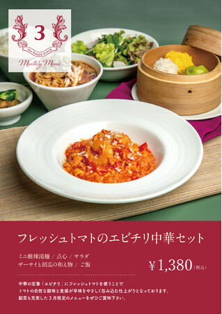3月ランチメニューは中華尽くしの「フレッシュトマトのエビチリ中華セット」が登場